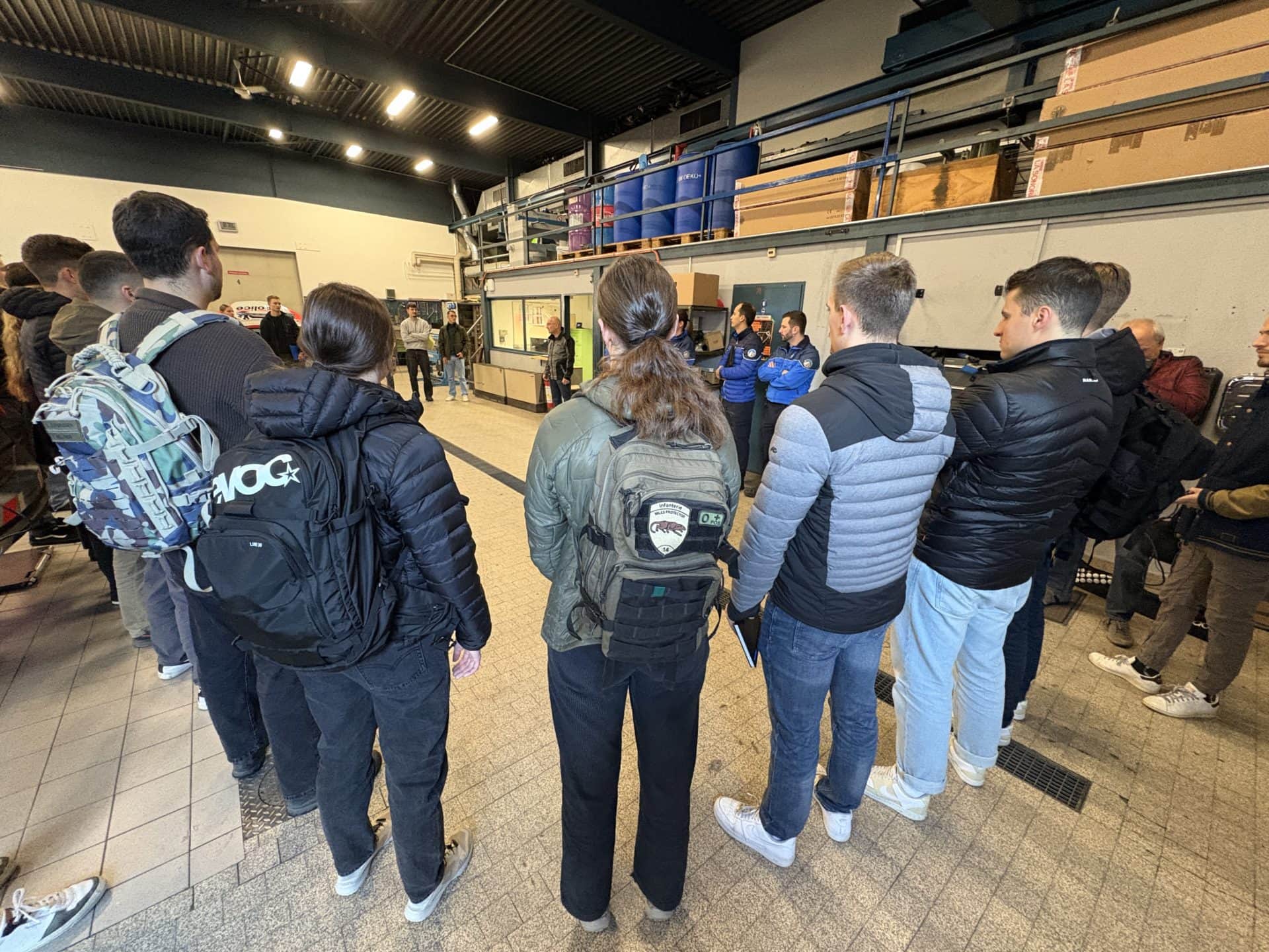 Der Vormittag geht weiter in der Garage der Kantonspolizei, wo die Aspirantinnen und Aspiranten ein weiteres zentrales Element ihres zukünftigen Alltags entdecken: die Einsatzfahrzeuge. Der Leiter der Polizeigarage, Régis Dayer, empfängt sie zu einer detaillierten Führung.