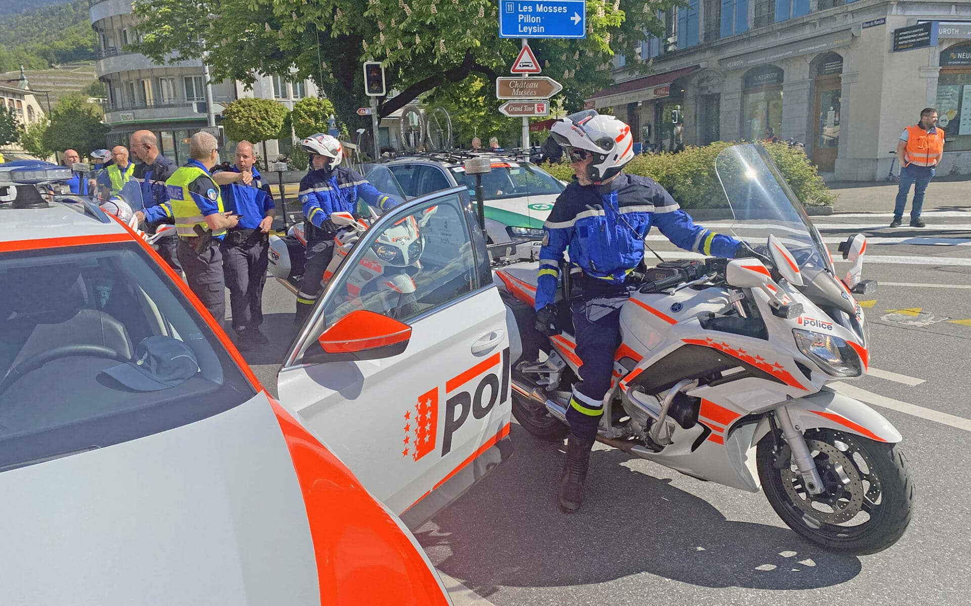 Jean-Daniel Thurre, Chef der Einheit Strassenverkehr der Kantonspolizei Wallis, leitete die verschiedenen Mittel von seinem Kommandowagen aus. Vor der Abfahrt nahm sich Hauptmann Thurre die Zeit, uns einige Erklärungen zu geben: