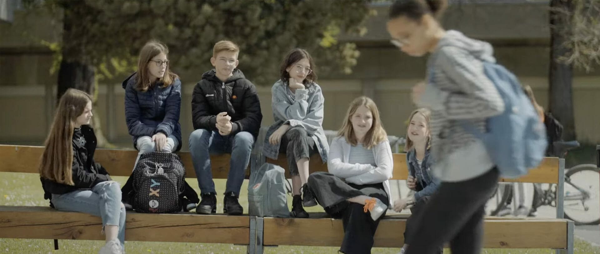 Eines Tages kamen die Streetworker in die Schule und stellten uns einen Kurzfilm mit dem Titel „Réagissons“ vor. Der Film handelt von Mobbing und wurde in der OS Grône gedreht.